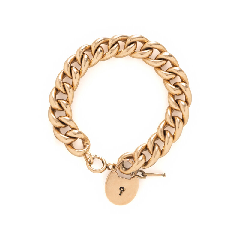 YELLOW GOLD BRACELET WITH LOCK AND KEY CHARM