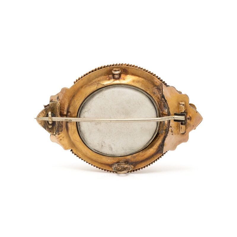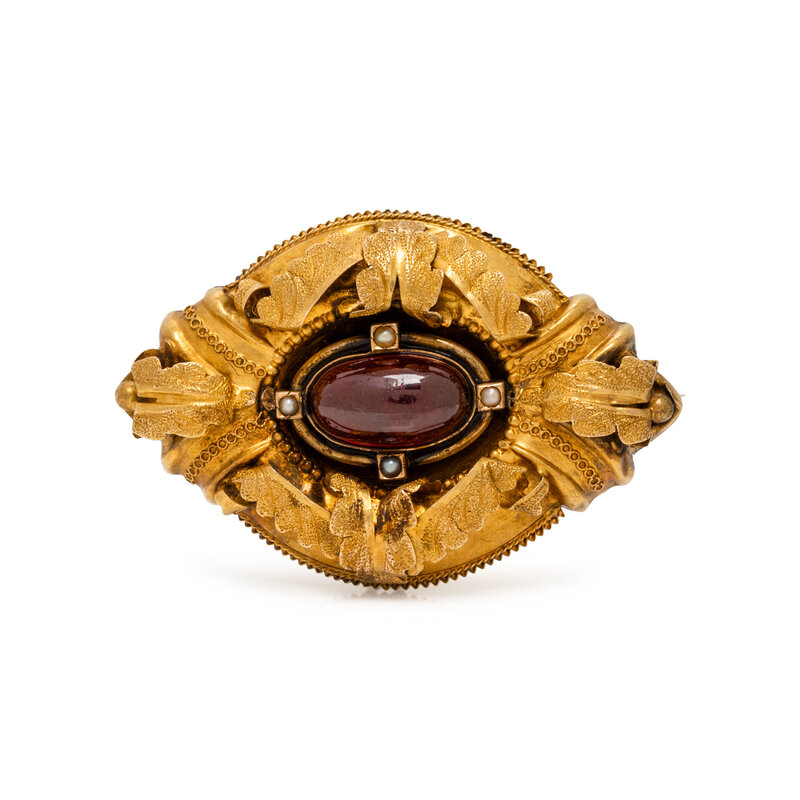 VICTORIAN, YELLOW GOLD AND GARNET MOURNING BROOCH