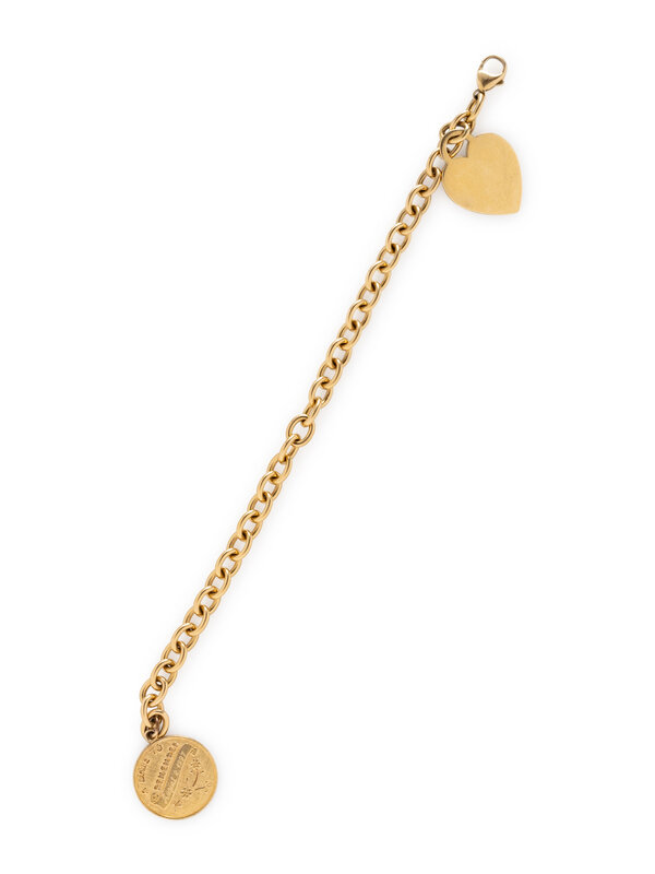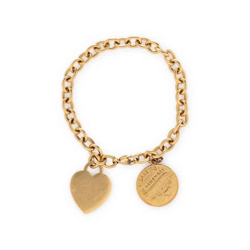 With a heart shaped Tiffany & Co. charm, together with a gold filled round charm. Yellow gold. 7 1/2 inches long.