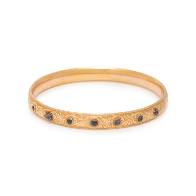 KREMENTZ & CO., ANTIQUE, SAPPHIRE AND YELLOW GOLD BANGLE BRACELET