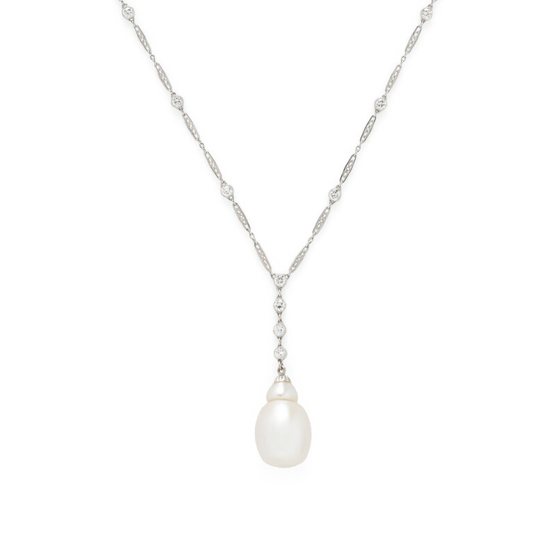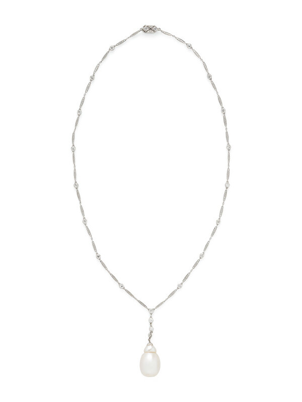 EDWARDIAN, PLATINUM, DIAMOND, AND SOUTH SEA CULTURED PEARL NECKLACE