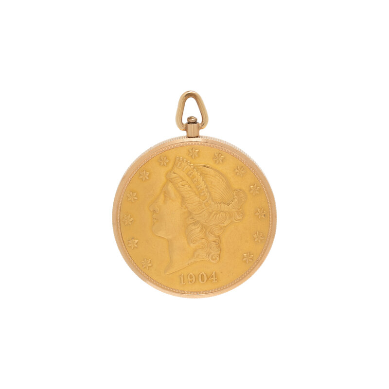 BUECHE GIROD, YELLOW GOLD LIBERTY COIN PENDANT / WATCH