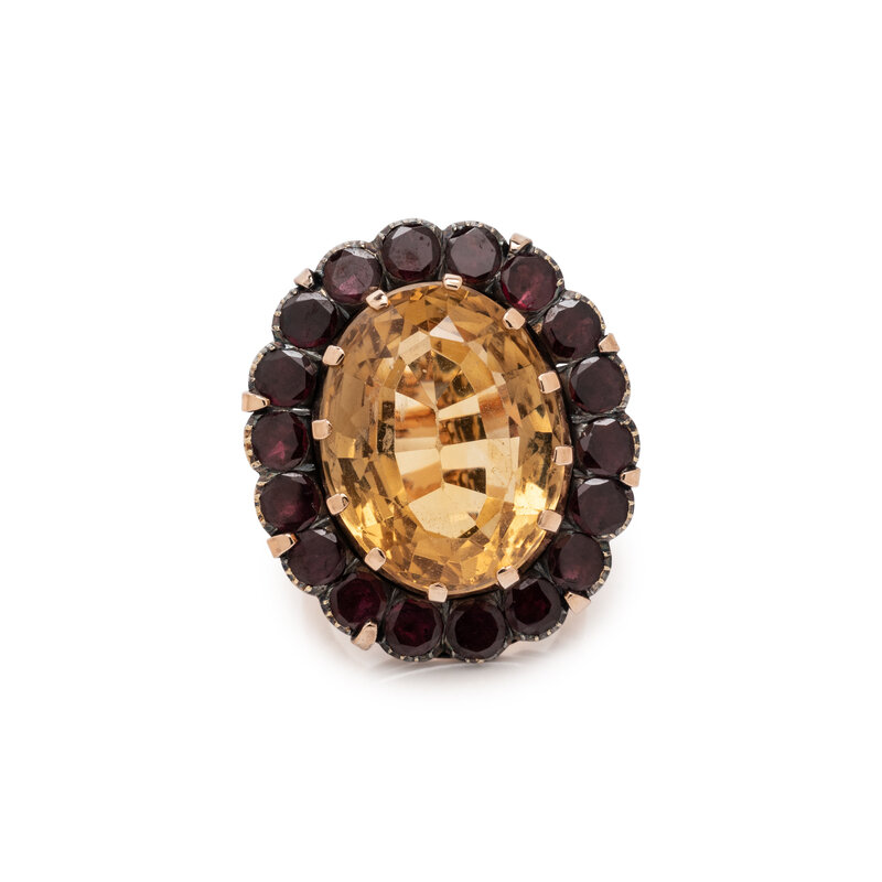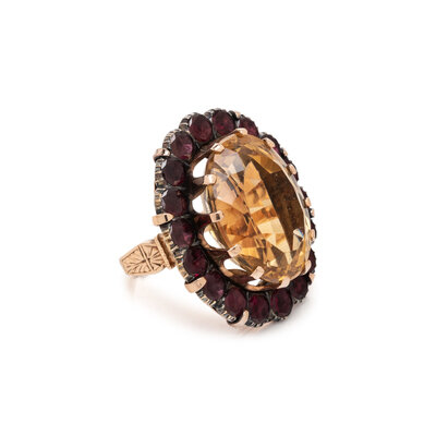 CITRINE AND GARNET RING