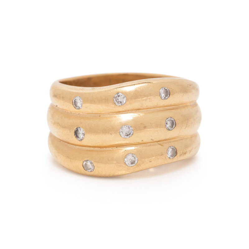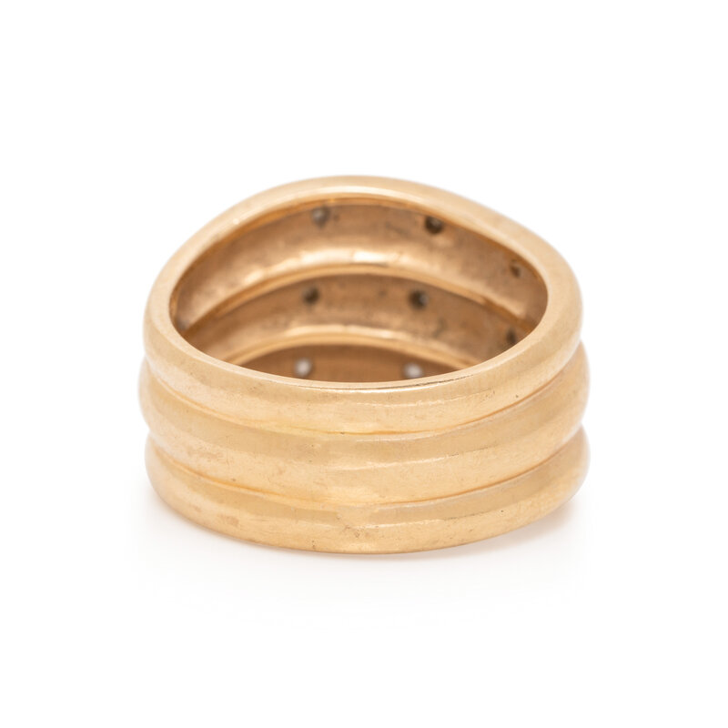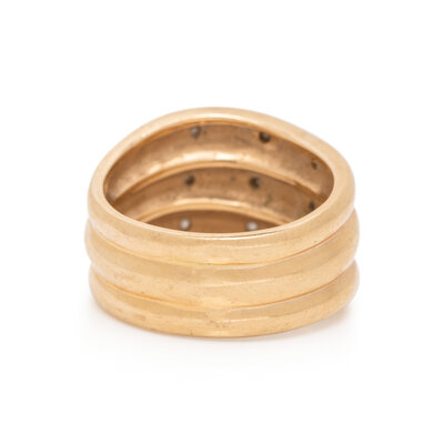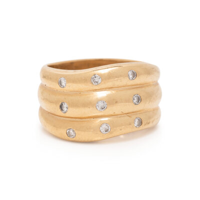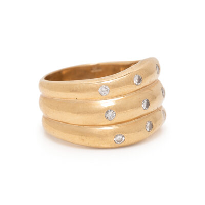 Round brilliant cut diamonds. 18 karat yellow gold. Ring size 5.