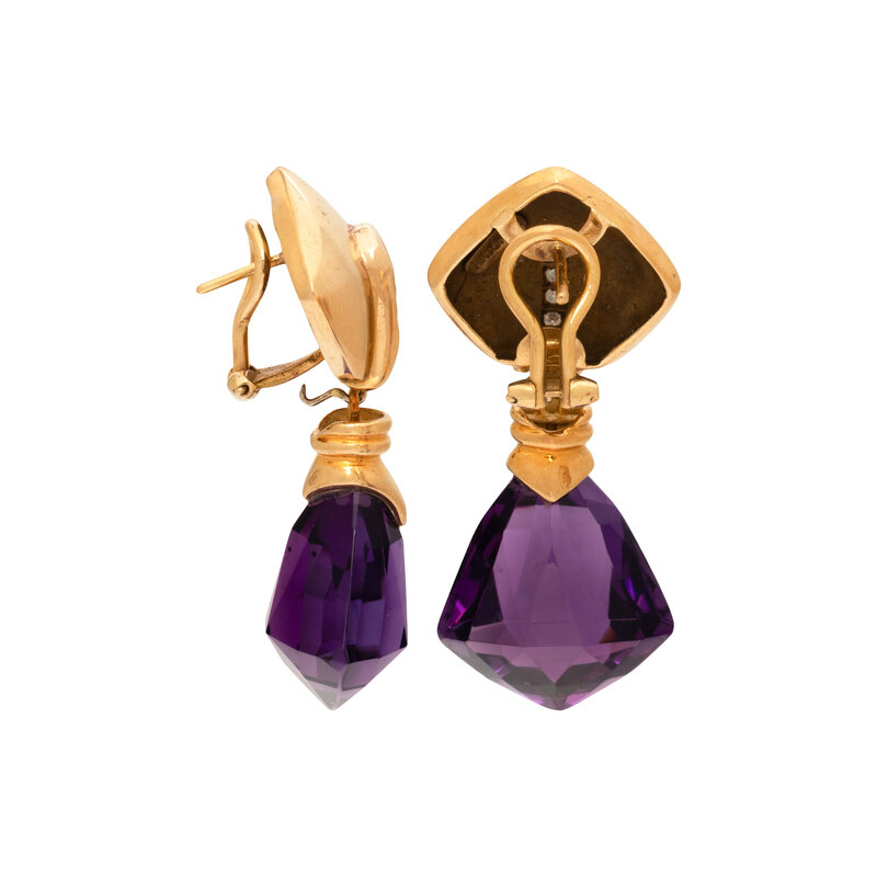 ANTONINI, YELLOW GOLD, AMETHYST, AND DIAMOND EARRINGS