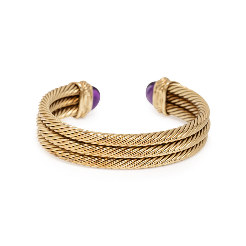 DAVID YURMAN, YELLOW GOLD, AMETHYST AND GREEN TOURMALINE CABLE CUFF BRACELET