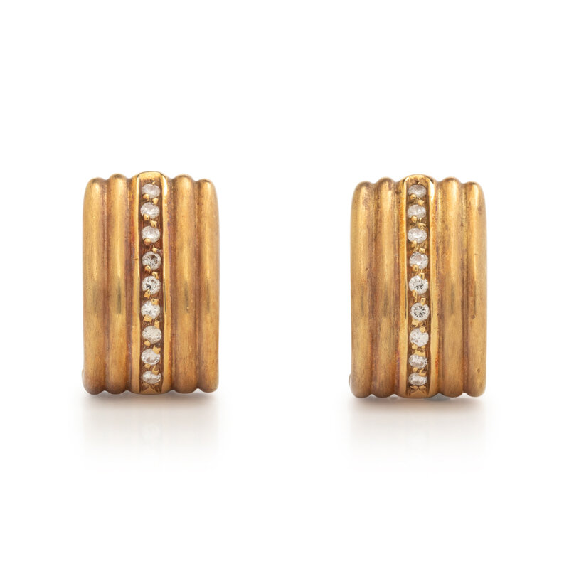 DIAMOND AND YELLOW GOLD HOOP EARRINGS