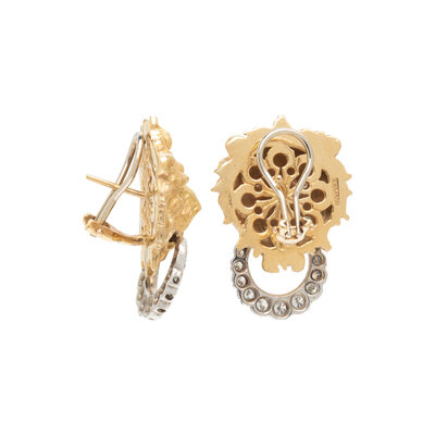 BICOLOR GOLD AND DIAMOND LION DOOR KNOCKER EARRINGS