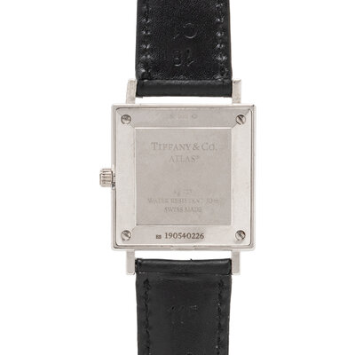 Stamps: Caseback: (Swiss hallmarks) 925 TIFFANY & Co. ATLAS Ag 925 WATER RESISTANT 30m SWISS MADE ES 190540226. Buckle: TIFFANY & CO. (Swiss hallmarks) Ag925.