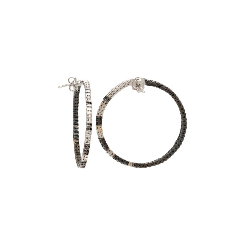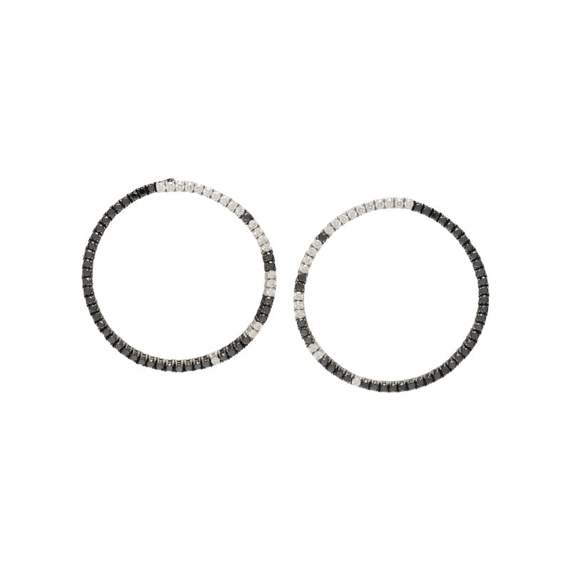 BLACK DIAMOND AND DIAMOND HOOP EARRINGS
