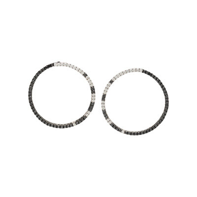 Round brilliant cut diamonds weighing approximately 0.88 carat total and black diamonds (origin of color not tested). 18 karat white and blackened gold. 1 5/8 inches long.