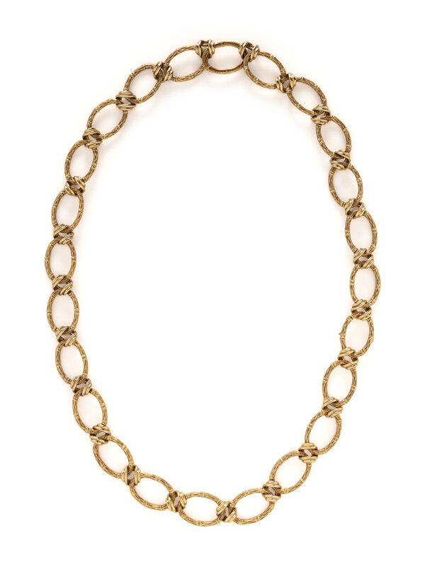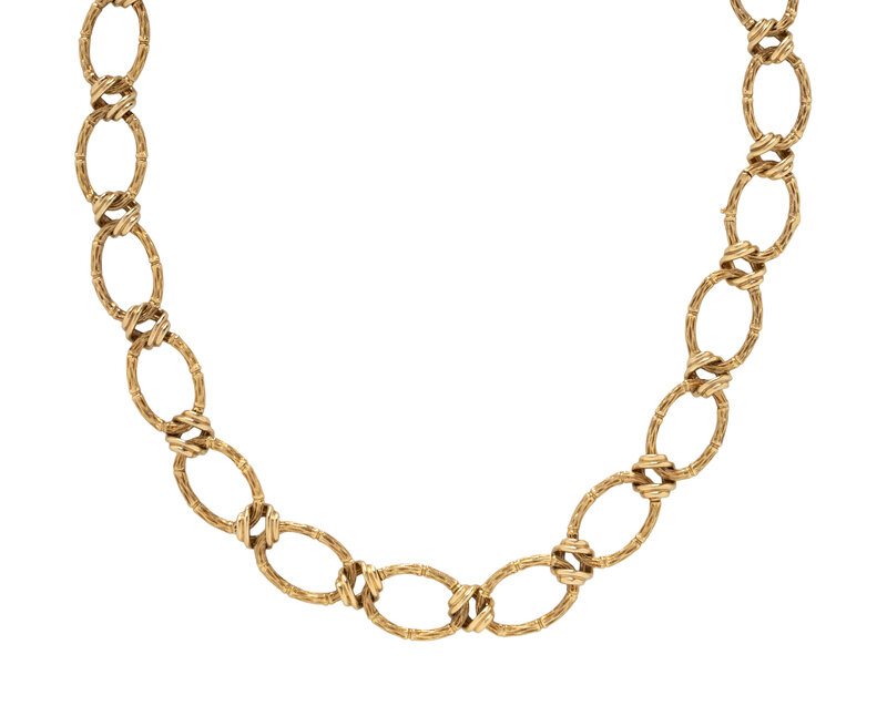 HAMMERMAN BROTHERS, YELLOW GOLD BAMBOO LINK LONG CHAIN