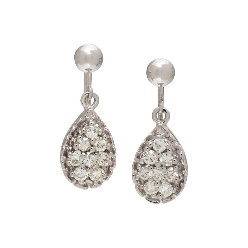 Round brilliant cut diamonds weighing approximately 0.70 carat total. 14 karat white gold. 1 inch long.