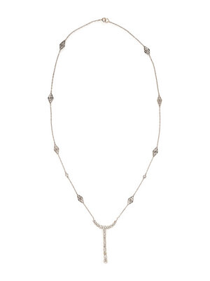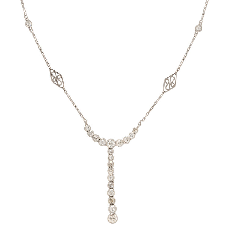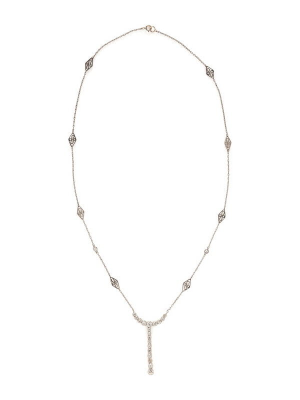 Old European, single and round transitional cut diamonds weighing approximately 1.00 carat total. Platinum and white gold. 19 inches long.
