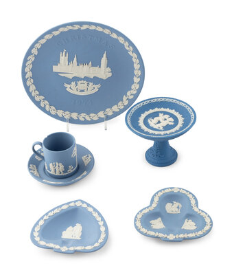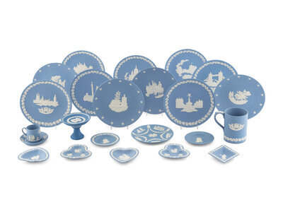 comprising 23 pieces including 12 plates, 1 tazza, 1 mug, 1 cup and saucer and 7 various dishes.