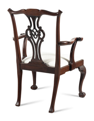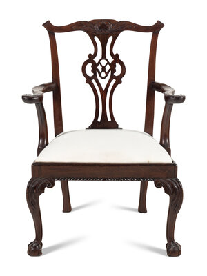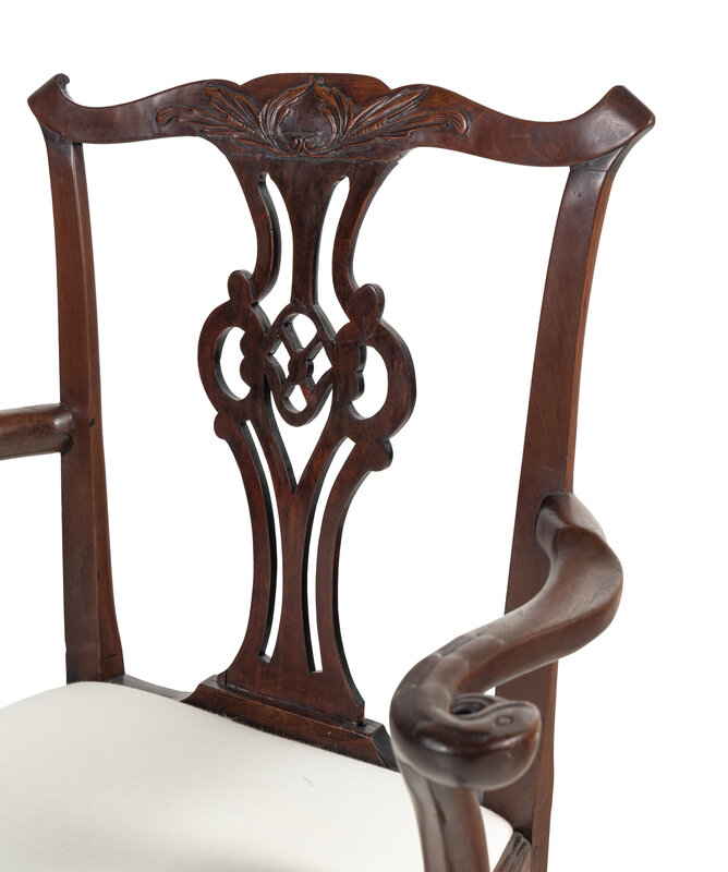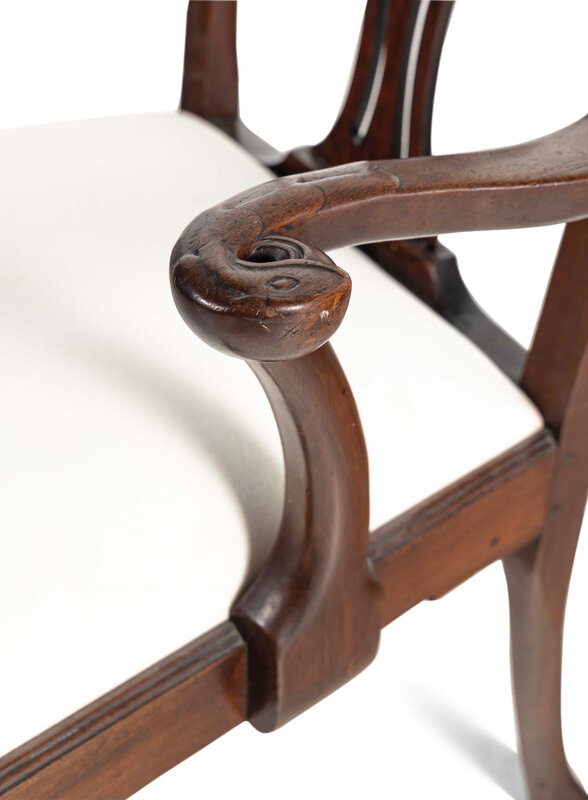 A George III Carved Walnut Open Armchair