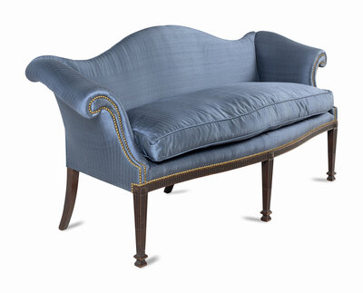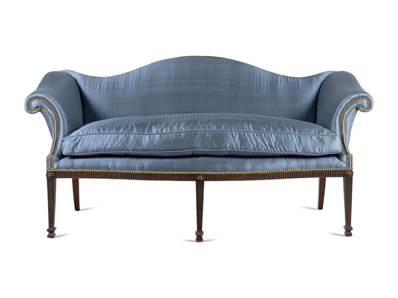 A George III Style Carved Mahogany Camelback Sofa