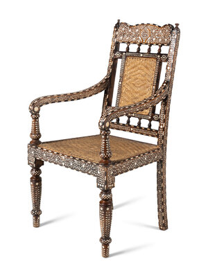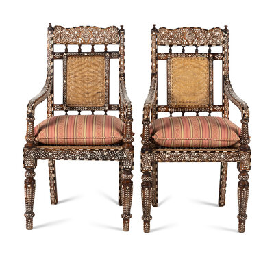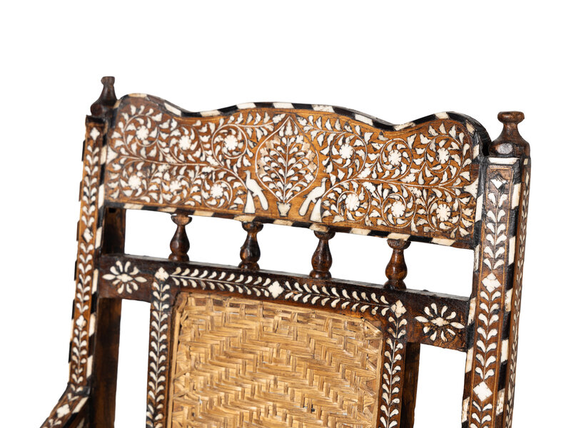 A Pair of Vizagapatam Style Bone Inlaid Hardwood Chairs