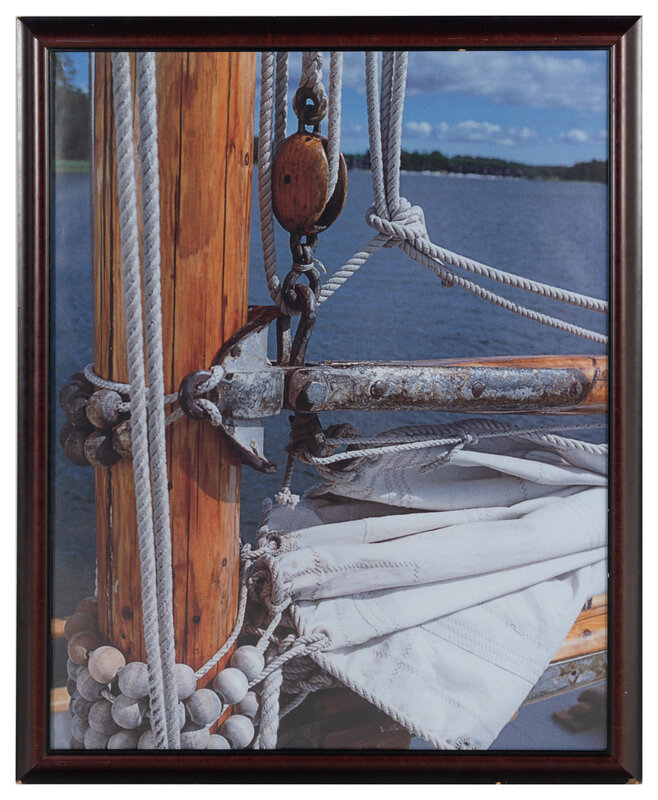 Large photographic reproduction of sailboat rigging. Framed and glazed, overall 65 x 53".