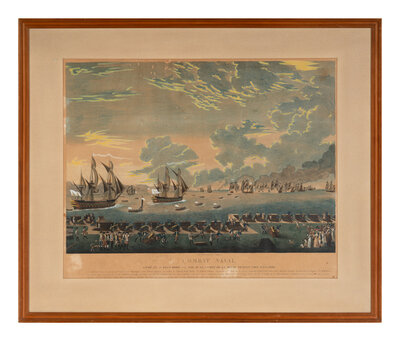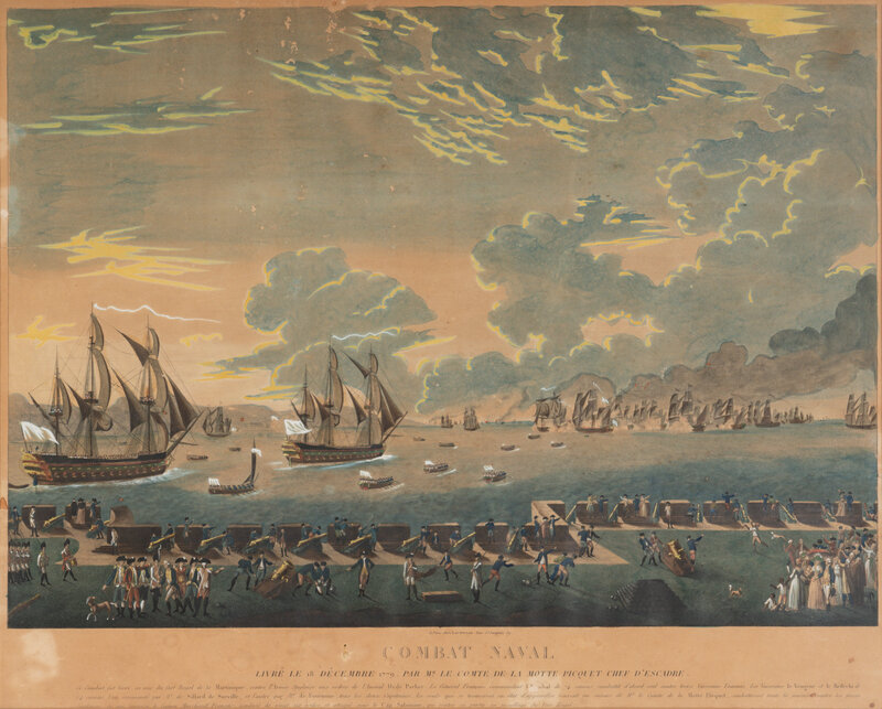 Combat Naval. Paris: Lordereau, c. 1779. Engraving with hand-coloring. Framed, matted and glazed, sight 21 x 26".