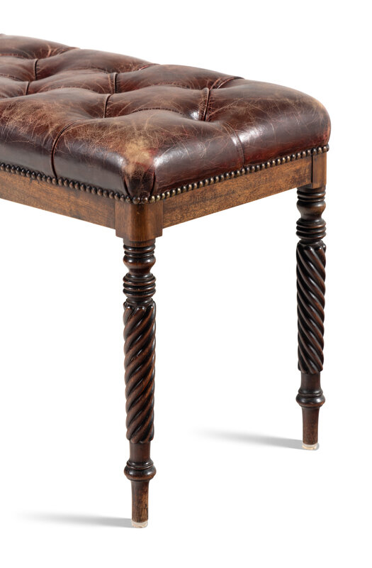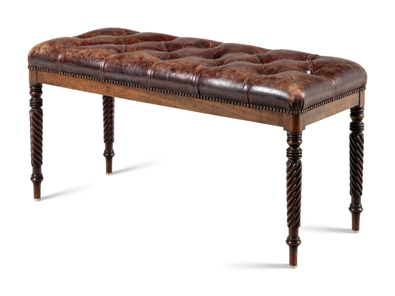 A Button-Tufted Leather Upholstered Bench