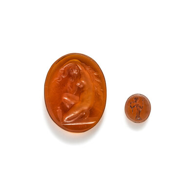 A Neoclassical Glass Intaglio with the Goddess Venus and a Carnelian Ring Stone