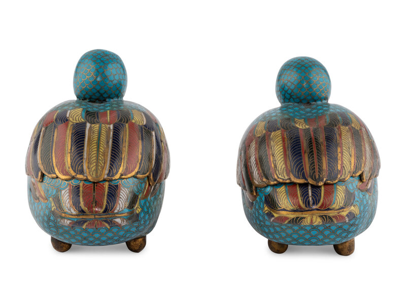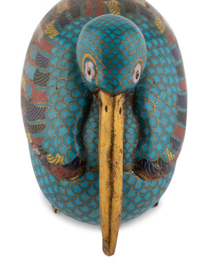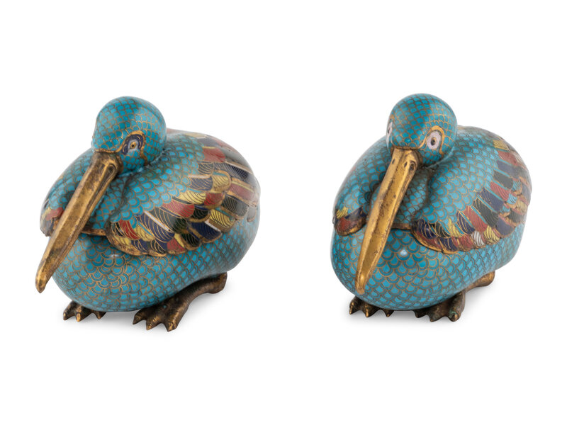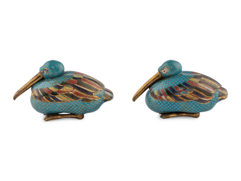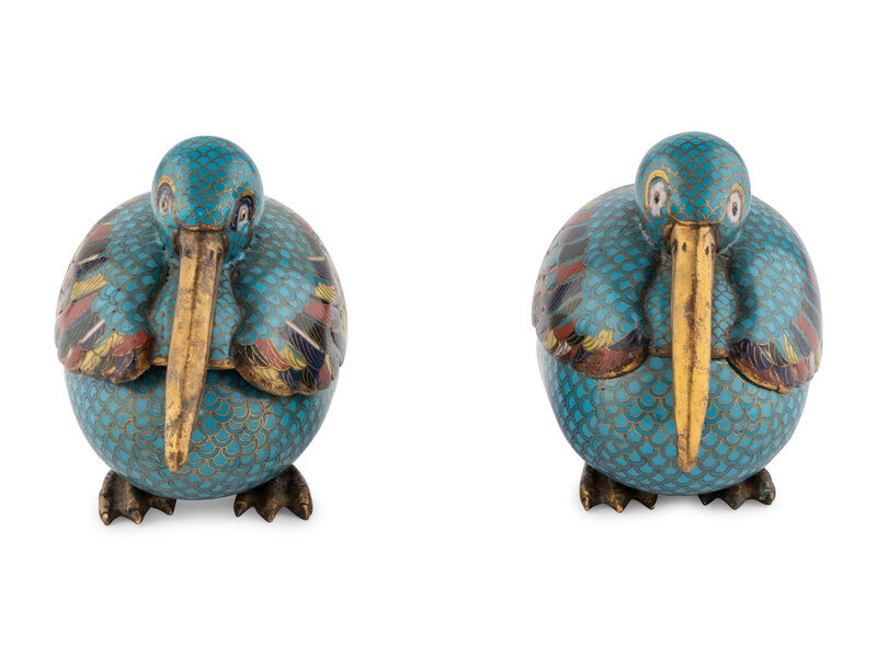 A Pair of Chinese Cloisonné Bird Form Covered Boxes