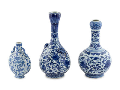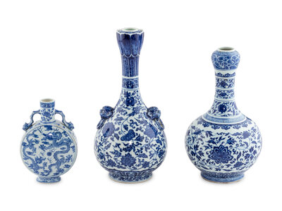 Three Chinese Blue and White Porcelain Vases