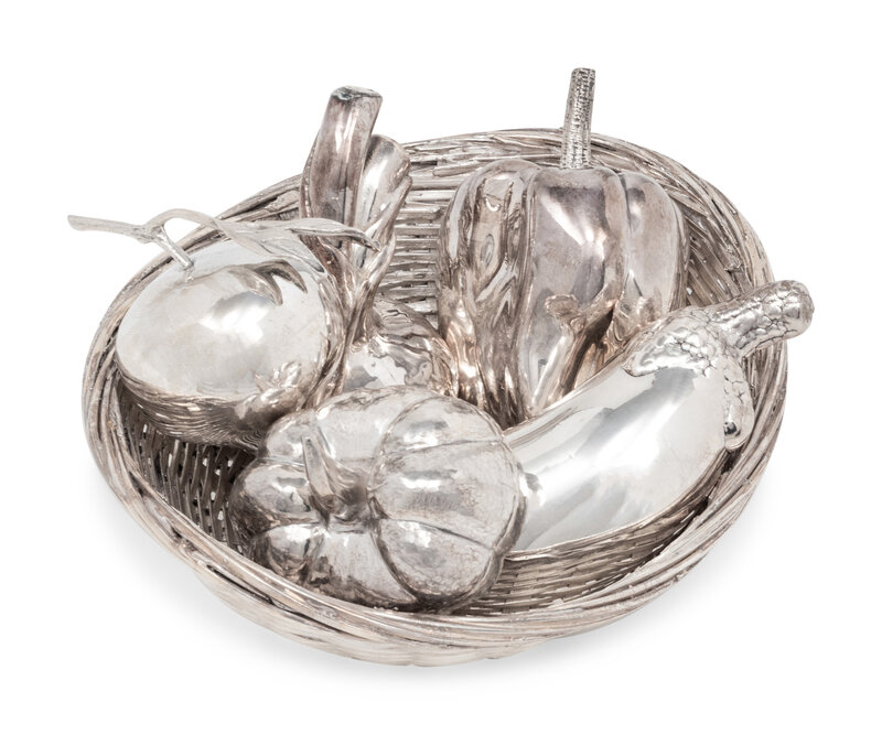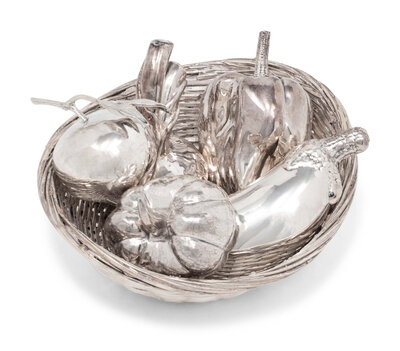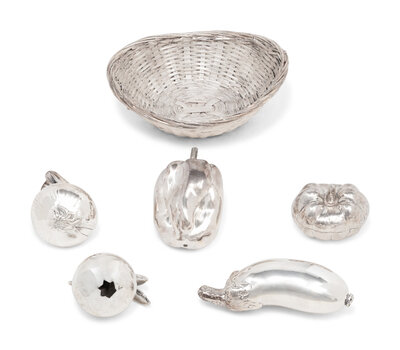 A Group of Five Silver Models of Fruit