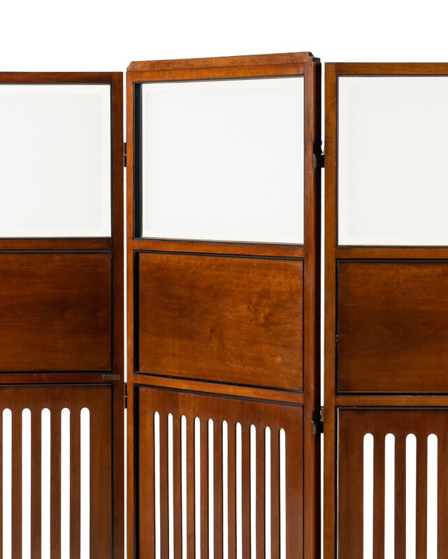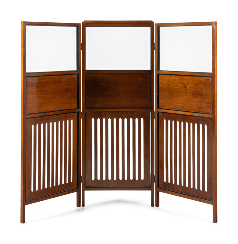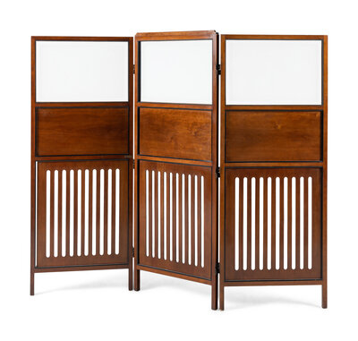 A Vienna Secession Mahogany and Frosted Glass Three-Panel Floor Screen