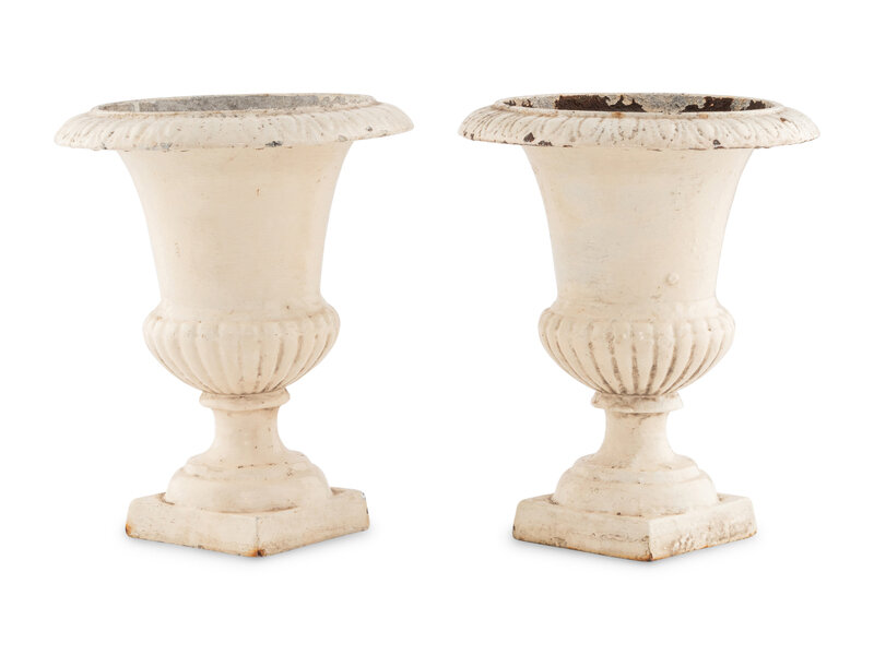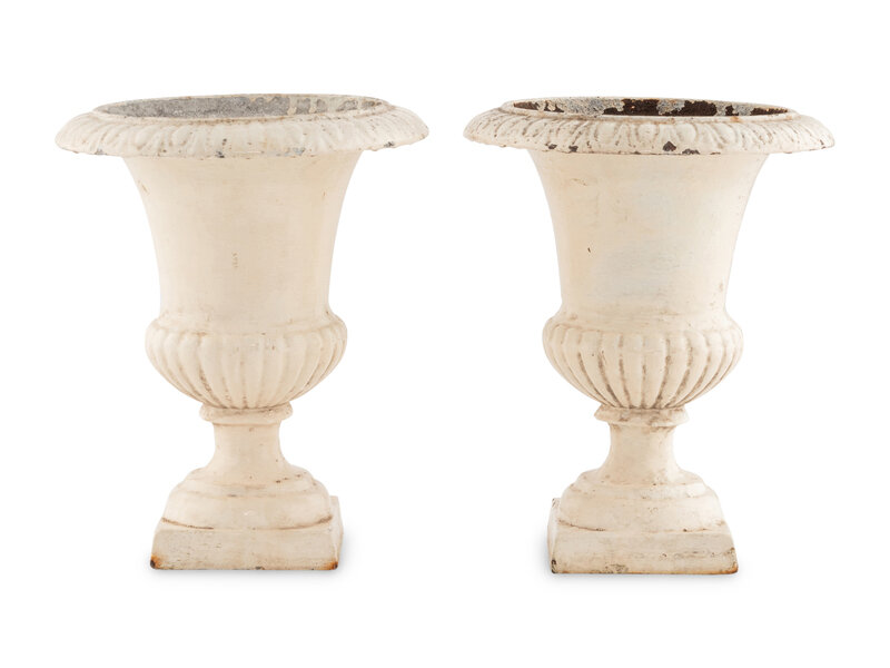 A Pair of Painted Iron Urns