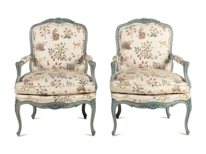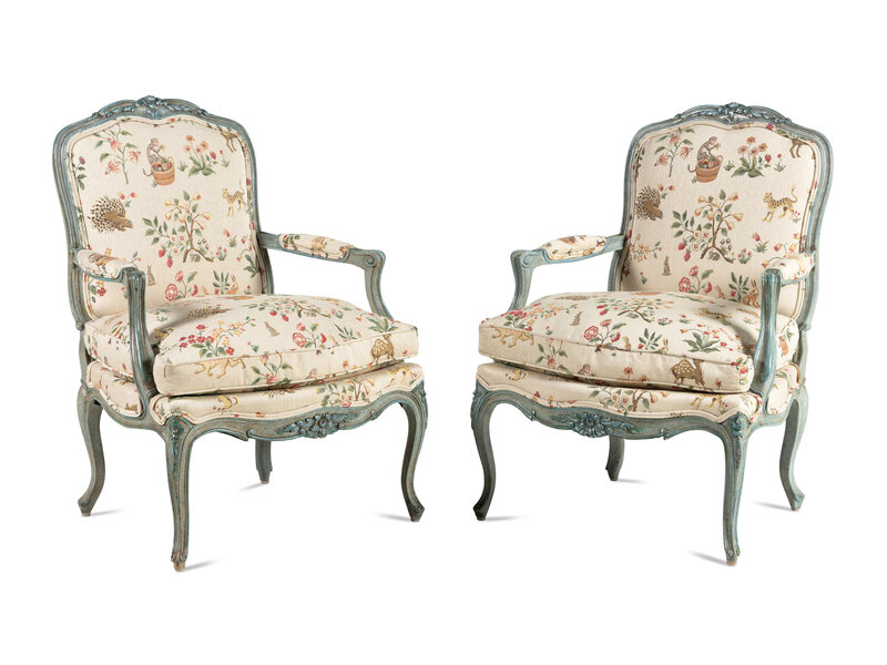 A Pair of Louis XV Style Painted Fauteuils