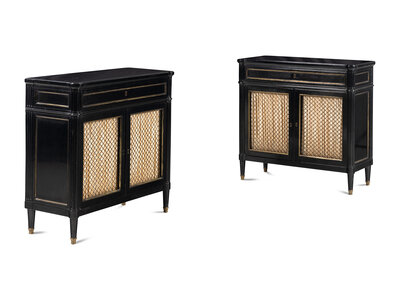 A Pair of Louis XVI Style Ebonized Cabinets