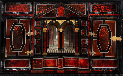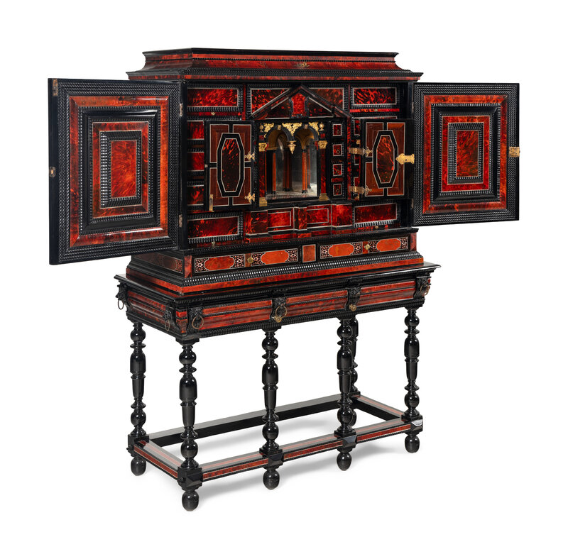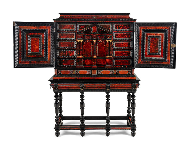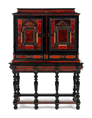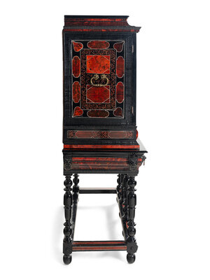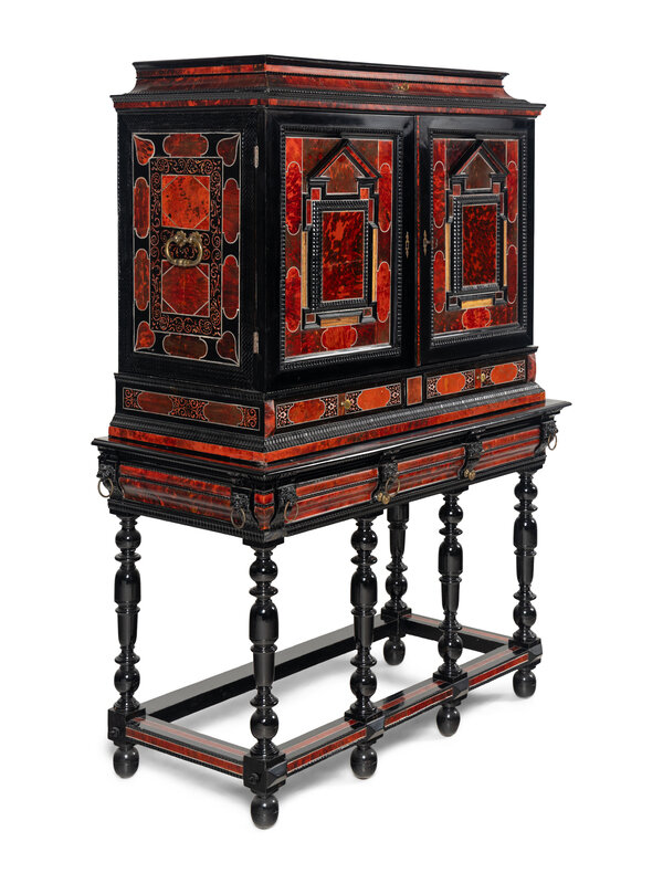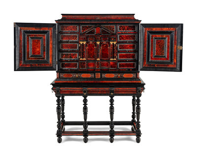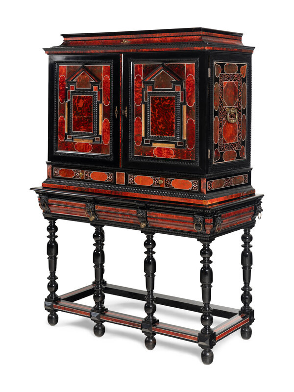 A Flemish Red Tortoise Shell, Kingwood and Ebony Cabinet on Stand