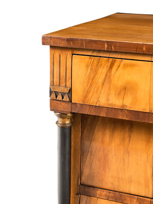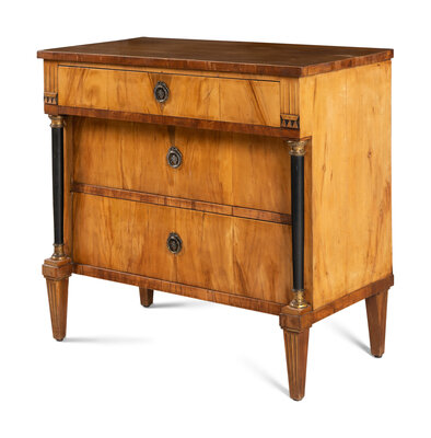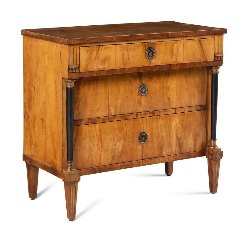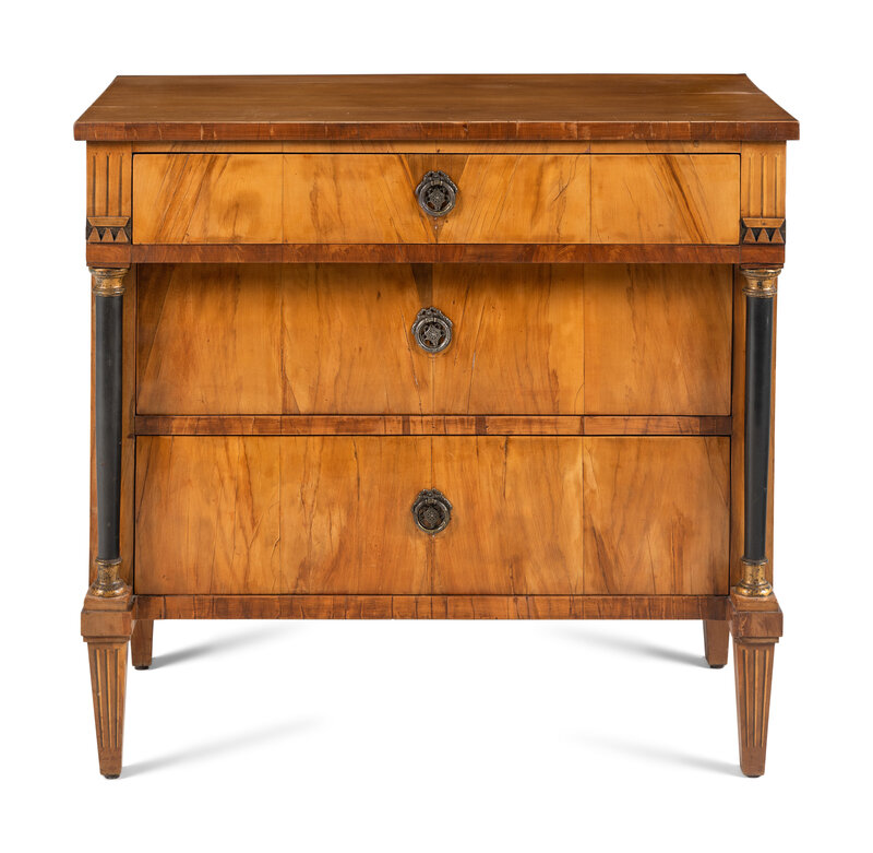 A Biedermeier Walnut and Parcel Ebonized Commode