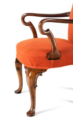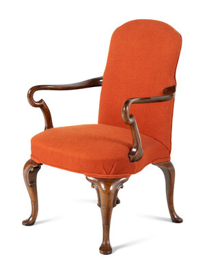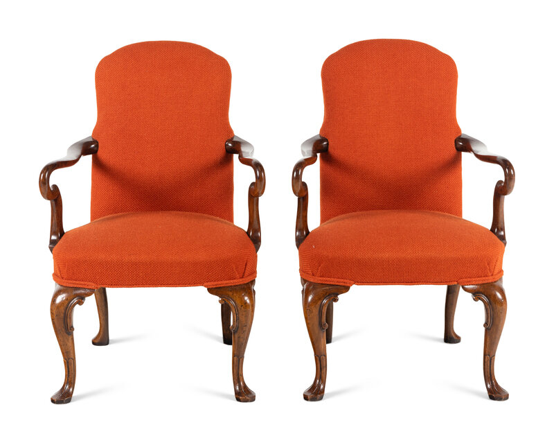 A Pair of Queen Anne Style Walnut Armchairs