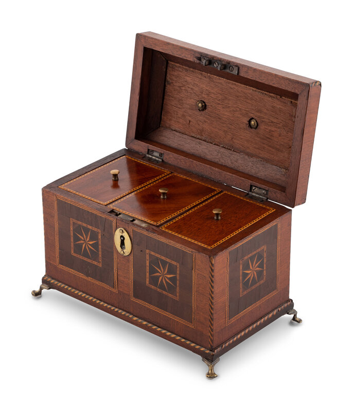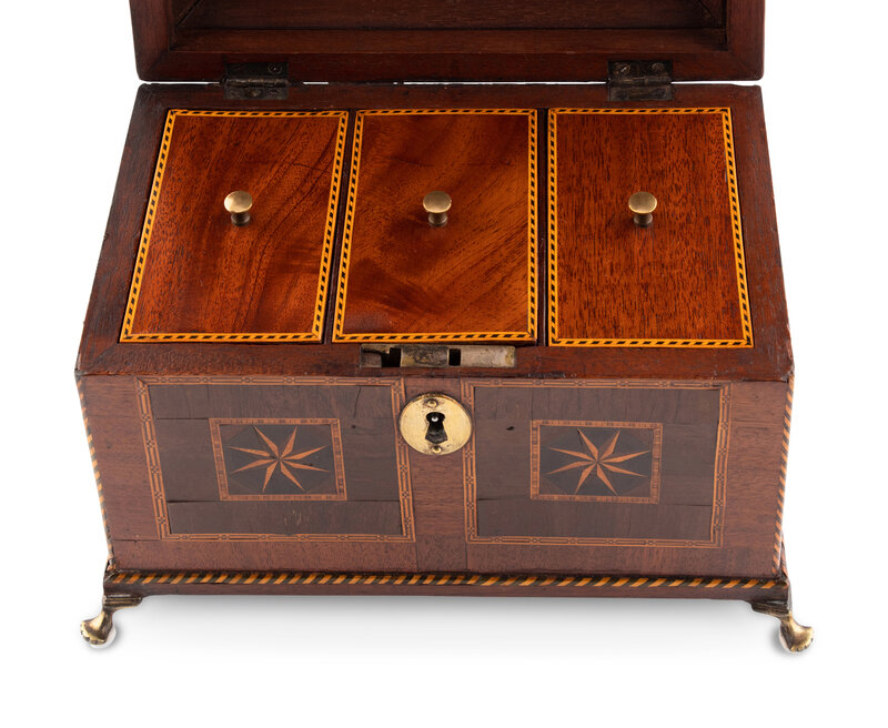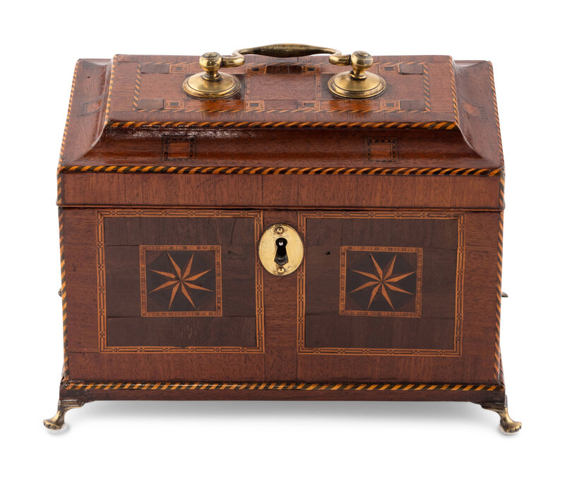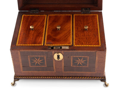 A George III Mahogany and Tunbridge Marquetry Tea Caddy