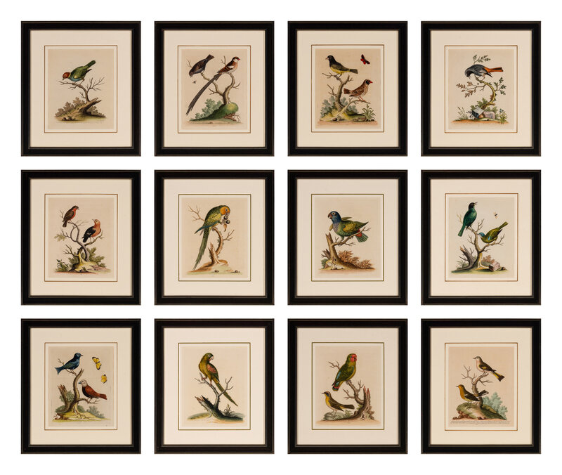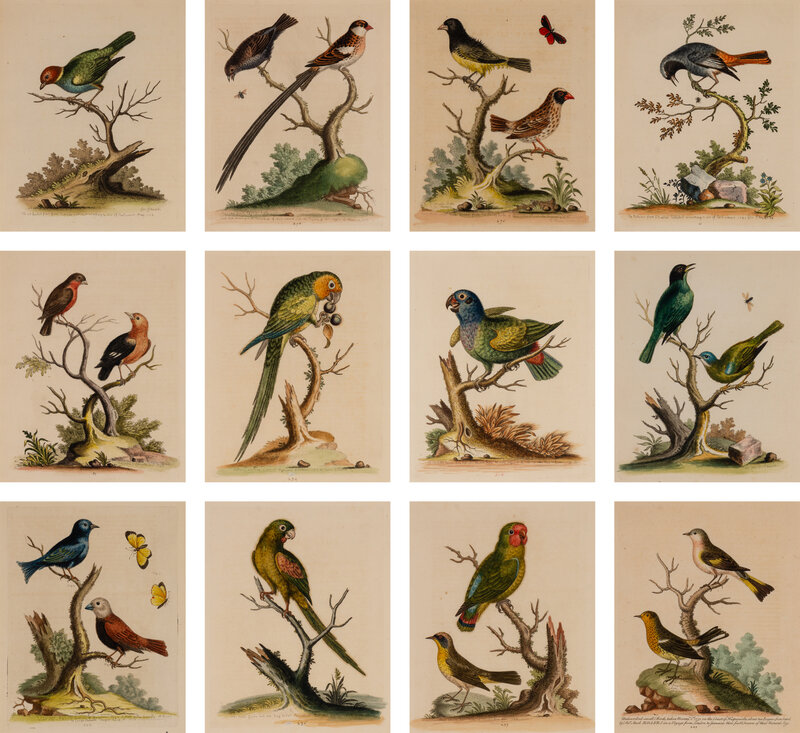A Set of Twelve Hand Colored Bird Engravings by George Edwards (English, 1694-1773)