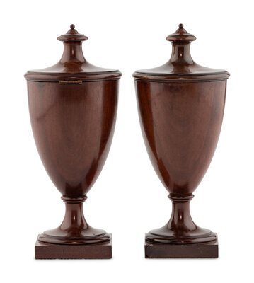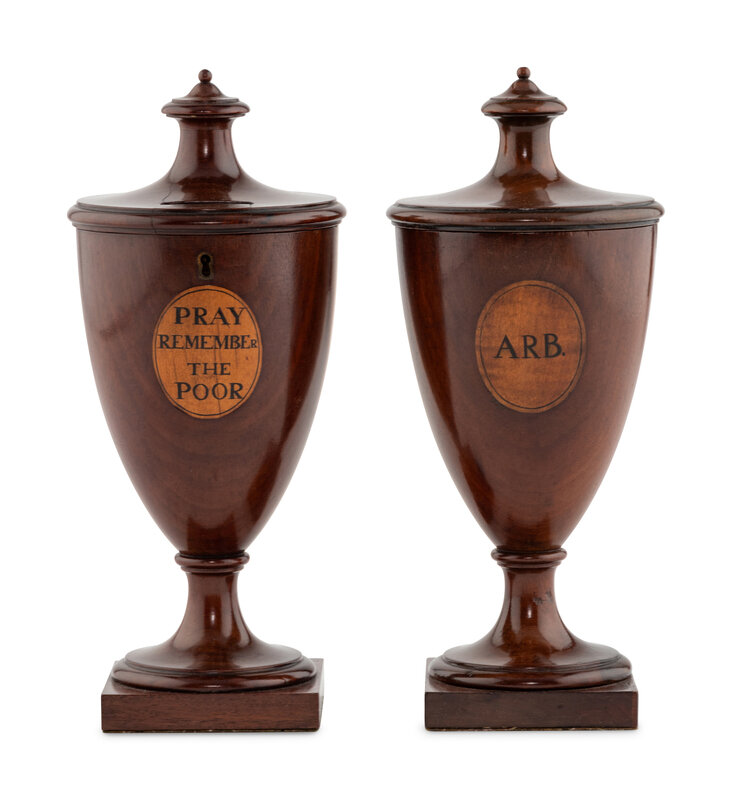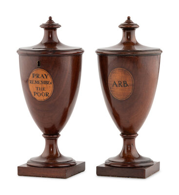 A Pair of George III Mahogany Alms Urns