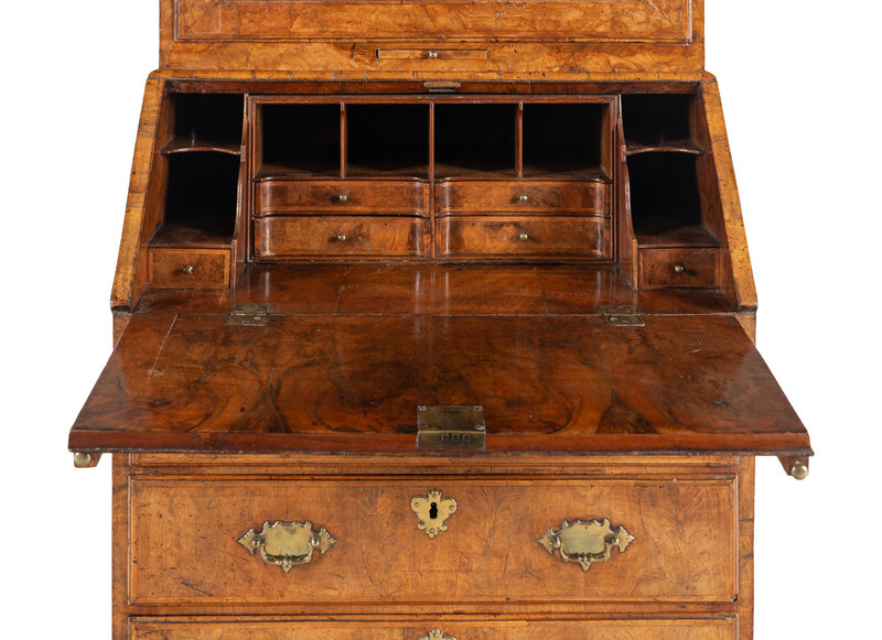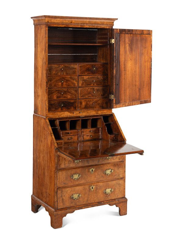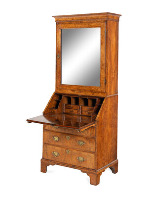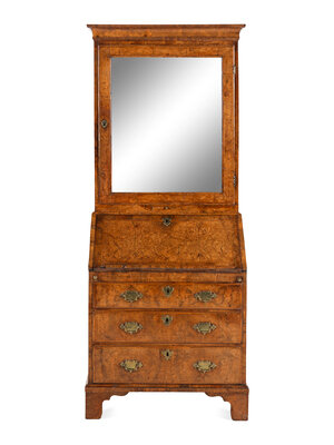 A George I Burl Walnut Bureau Cabinet