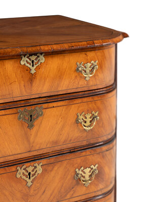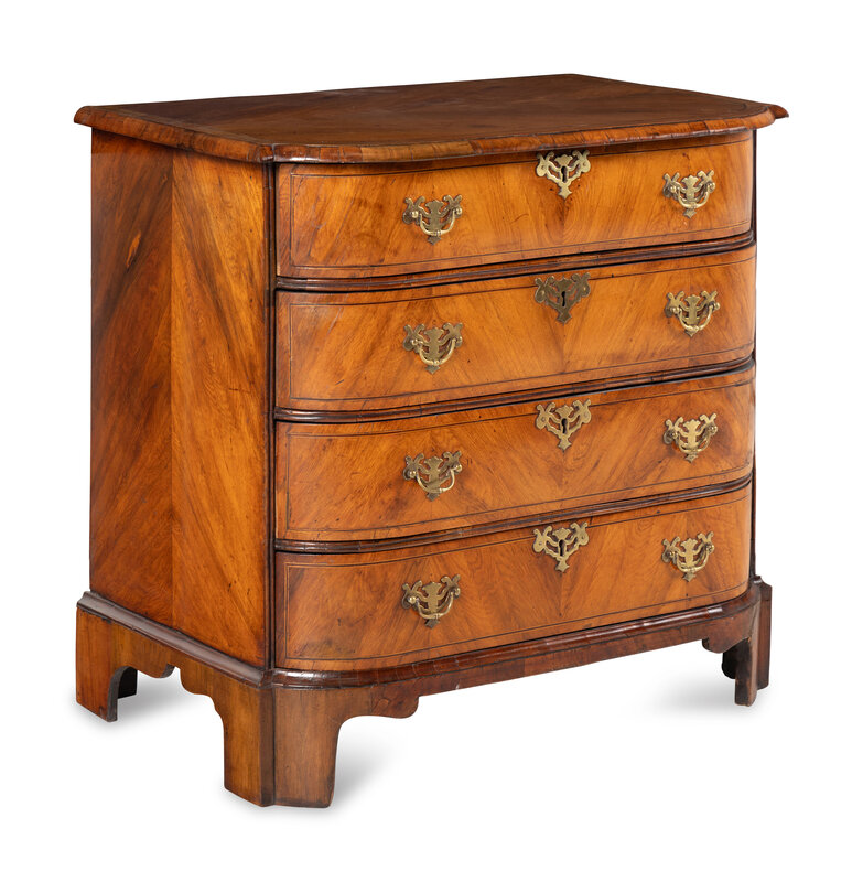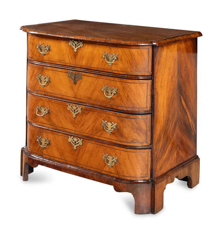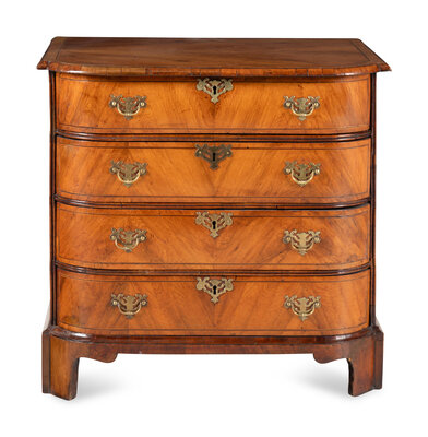A George III Bookmatch-Veneered Bowfront Chest of Drawers