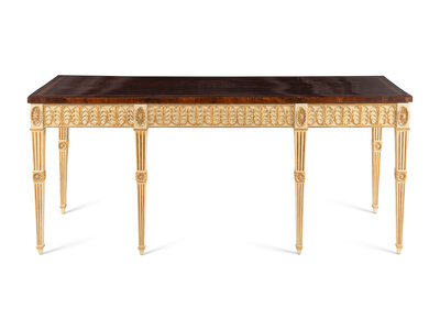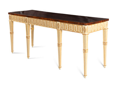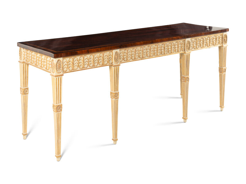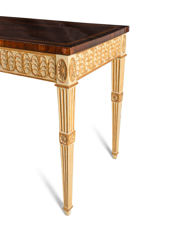 A George III Mahogany, Tulipwood, Cream-Painted and Parcel-Gilt Side Table