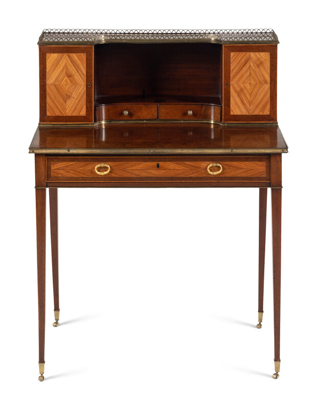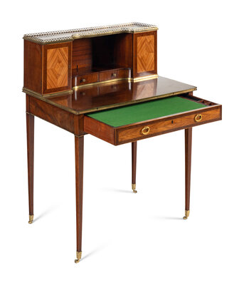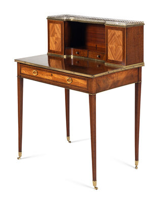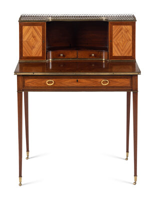 A Regency Tulipwood and Mahogany Bonheur du Jour