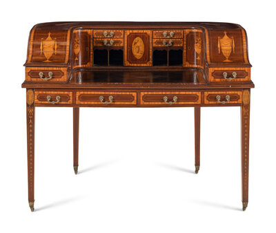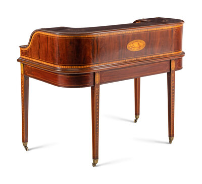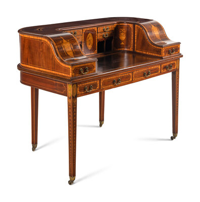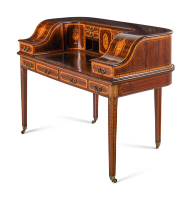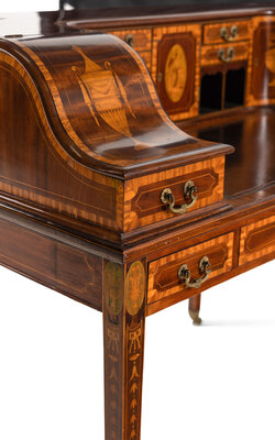 An Edwardian Mahogany and Marquetry Carlton House Desk