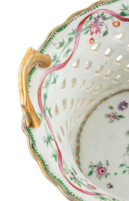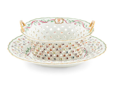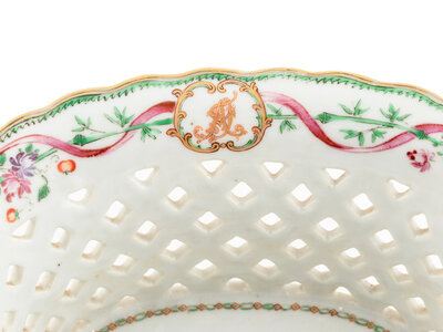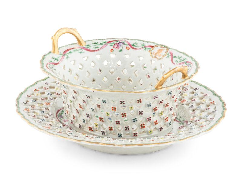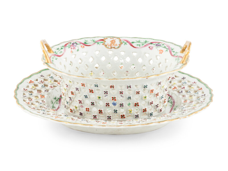 A Chinese Export Armorial Porcelain Reticulated Basket and Underplate
