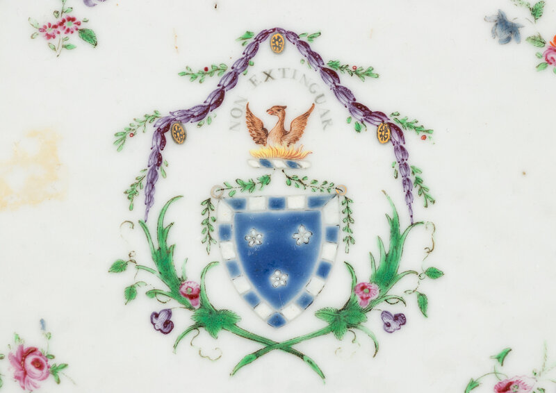 the basket and underplate centered with the armorial of the Fraser family of Phopachy, the borders with a gilt monogram 'AF'.