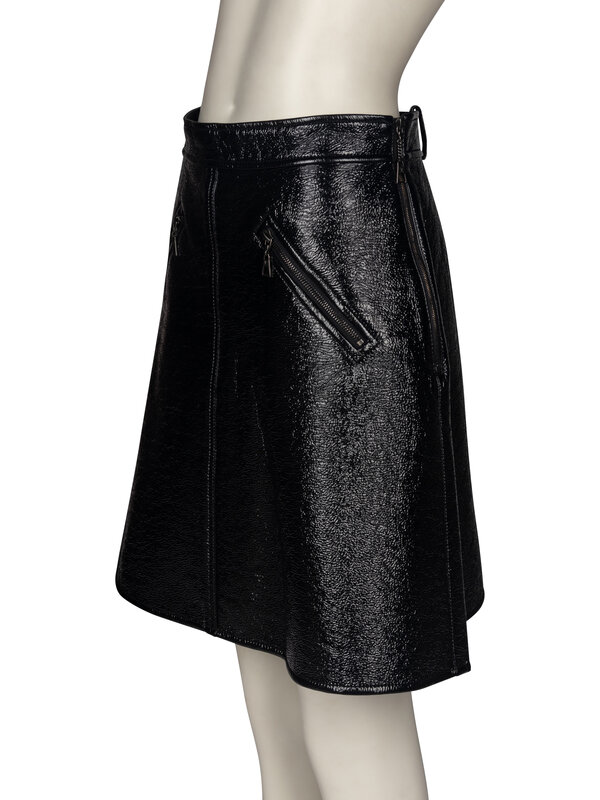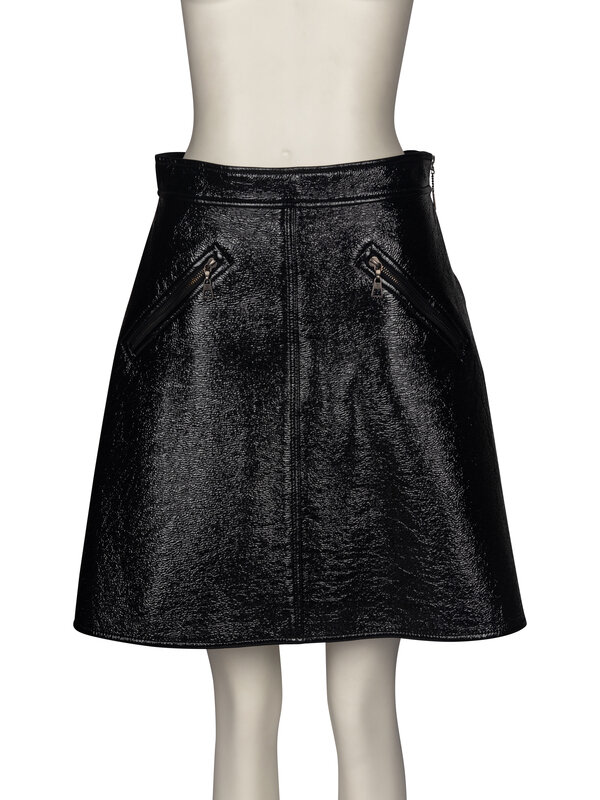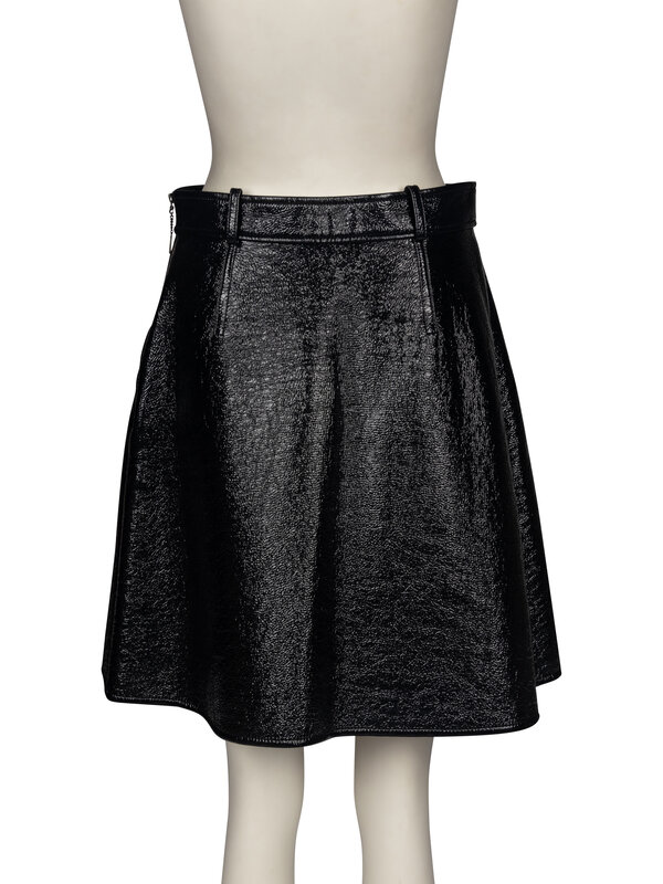 A-line mini skirt in black vinyl. Two inset zippered pockets. Side zip closure. Back belt loops. This textured vinyl material is featured throughout the Fall/Winter 2017 collection by Nicolas Ghesquière.