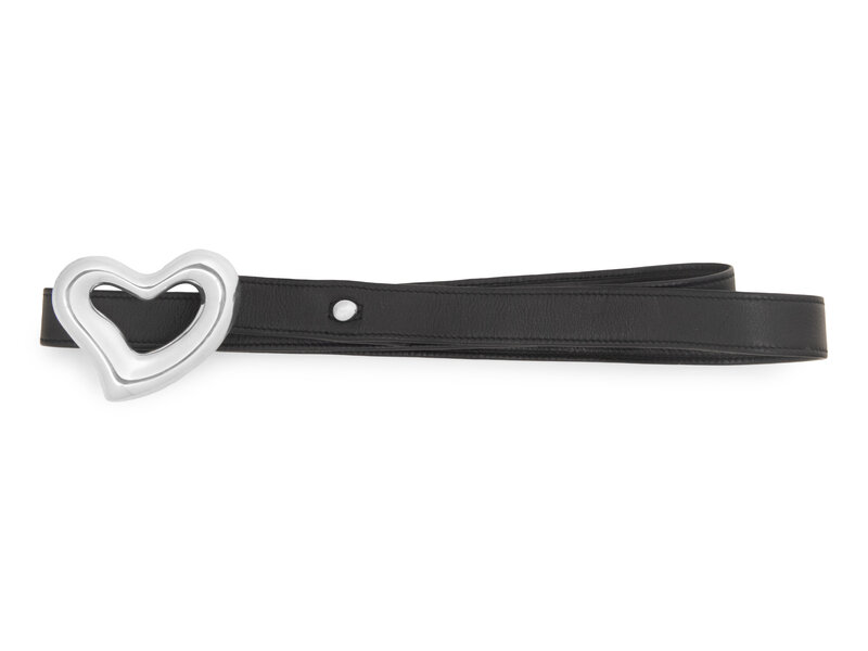 Black leather belt with Sterling Silver heart buckle.