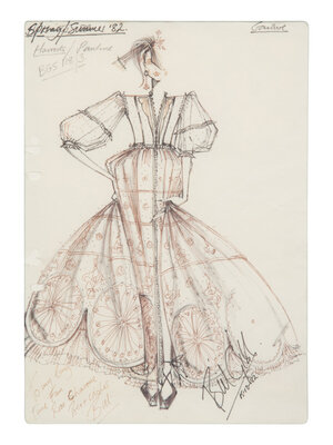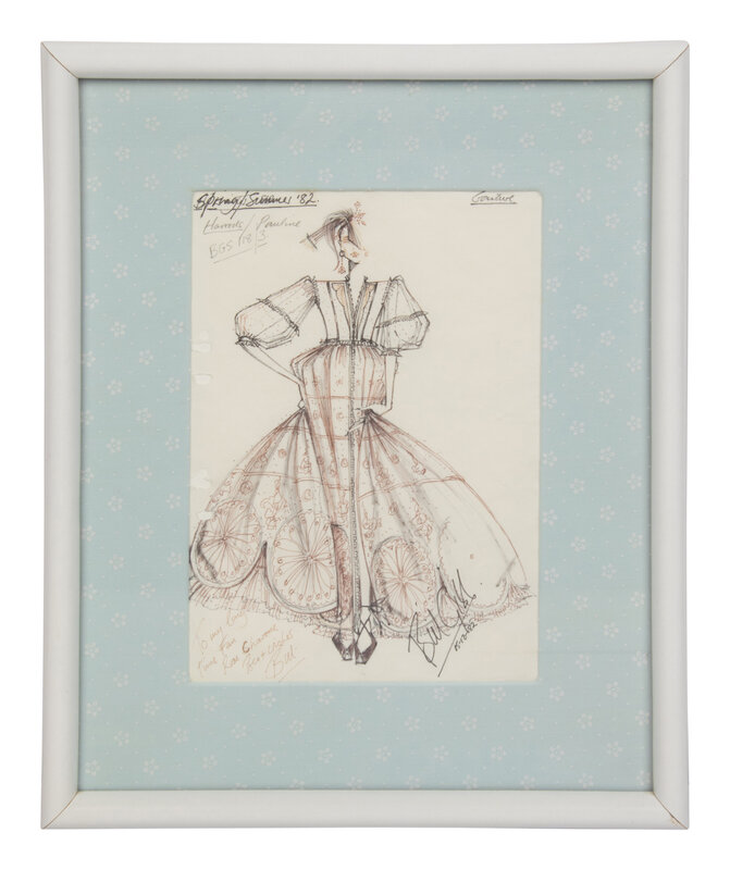 Framed Fashion Illustration by Bill Gibb, 1982