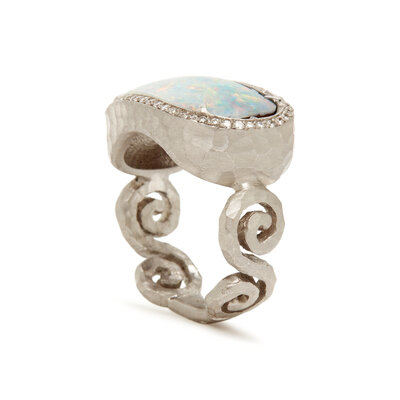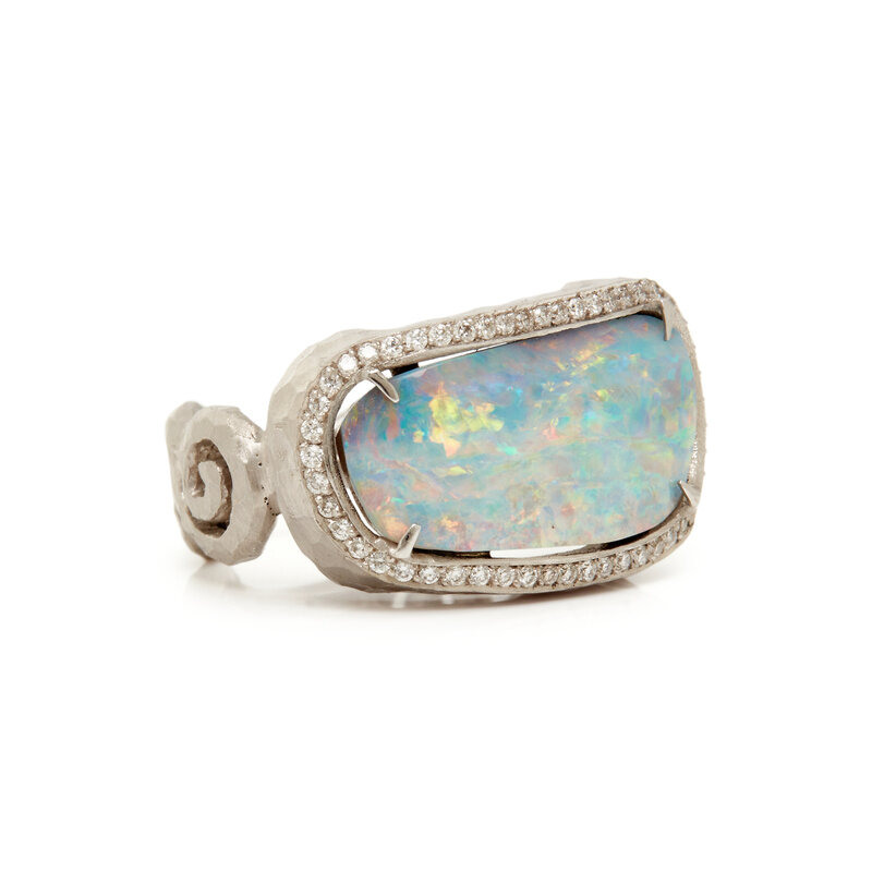 WHITE GOLD, OPAL, AND DIAMOND RING